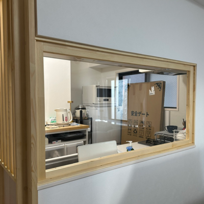 ホームページからご相談をいただいたお客様。キッチンでいたずらをしてしまう猫ちゃんのための侵入防止柵をご希望いただき、概算見積をご確認いただいた後に現地で採寸を兼ねた打ち合わせを行いました。