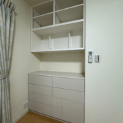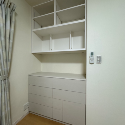 このお部屋では弦楽器の練習をされるということで、チェストは楽器をケースごと置くカウンターとして、引き出しの中はCDや楽譜の収納として使う想定です。