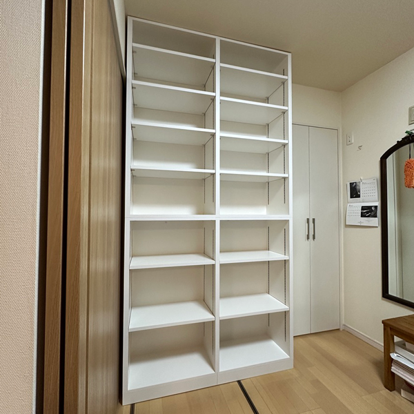引き戸の可動域に物が入り込まないよう、左詰めで設置しました。