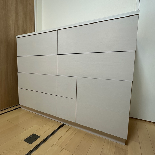 必要最低限の奥行きで、チェストを置いていた時よりも床を広く使えるようになっています。