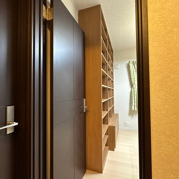 お部屋の扉ギリギリまで幅を取って収納力を追求できたのはオーダーメイドならではのポイント。収納にお困りの方はぜひ一度、気軽にご相談ください。