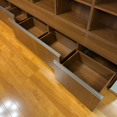 下段はソフトクローズ仕様の引き出しで、判型の特殊な書籍をまとめて仕舞うことができます。