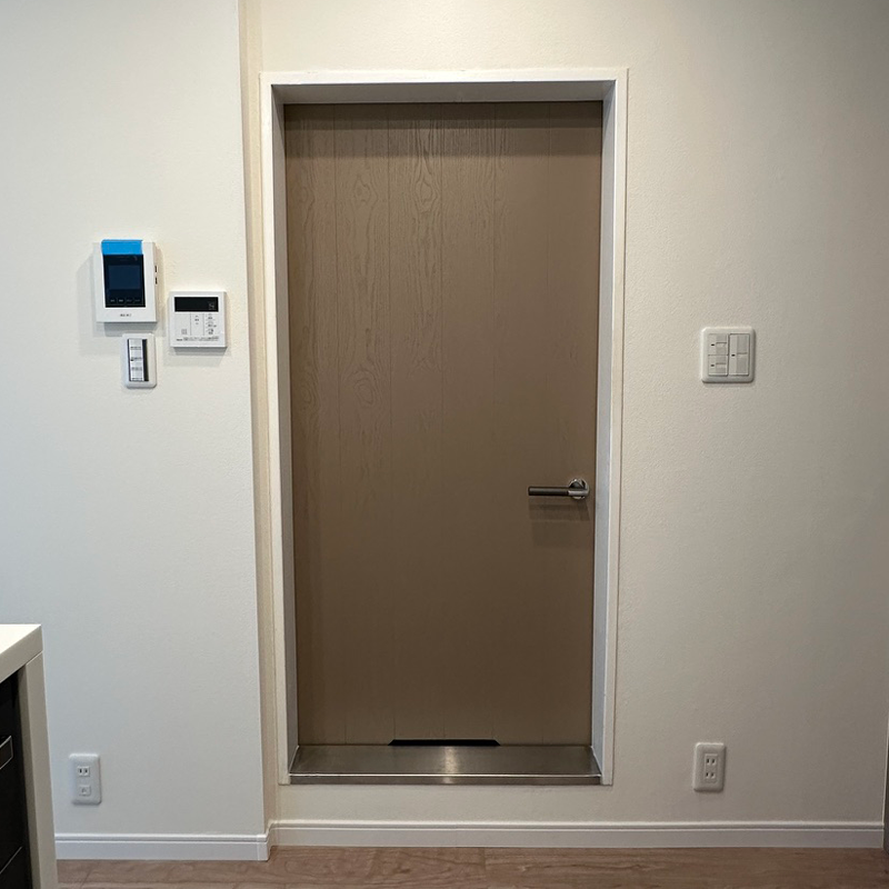 シャワーブースのある部屋に通じる扉も新調しました。下部に通気口を設けた特殊形状です。