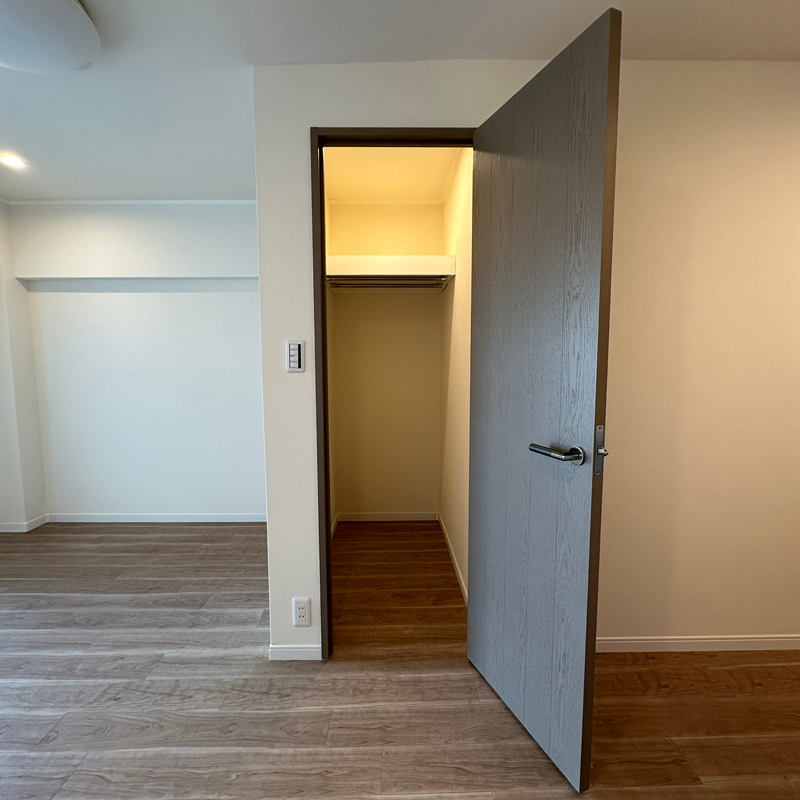 築年数が長いこともあり、リフォームで余分に建て増した壁もあったため、解体して有効面積はもとより少し広くなりました。そのぶん、コンパクトなウォークインクローゼットを設けています。