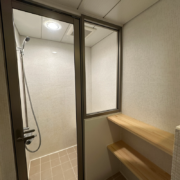 コンクリート壁で囲われたなかにトイレ付きの浴室があり、壁を壊さずにどう作り変えるかが難しいポイントでした。お風呂をシャワーブースに変更し余ったスペースを脱衣場として使えるようにするなど、打ち合わせでは生活スタイルの想定を細かく検討していき、なるべく無駄のない、コンパクトながら使いやすいお部屋を目指しました。